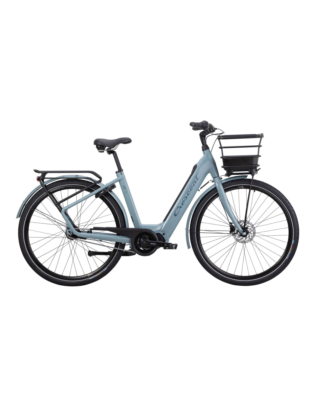 CRESCENT Elody 30, 5-vxl, 51cm, Blå Matt m korg |51|. Elegant och komplett city-elcykel med stark EP5-motor, integrerat batteri och komfort i fokus.